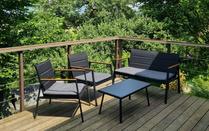 Aménagement en bois, terrasse, potager surélevé, pergola